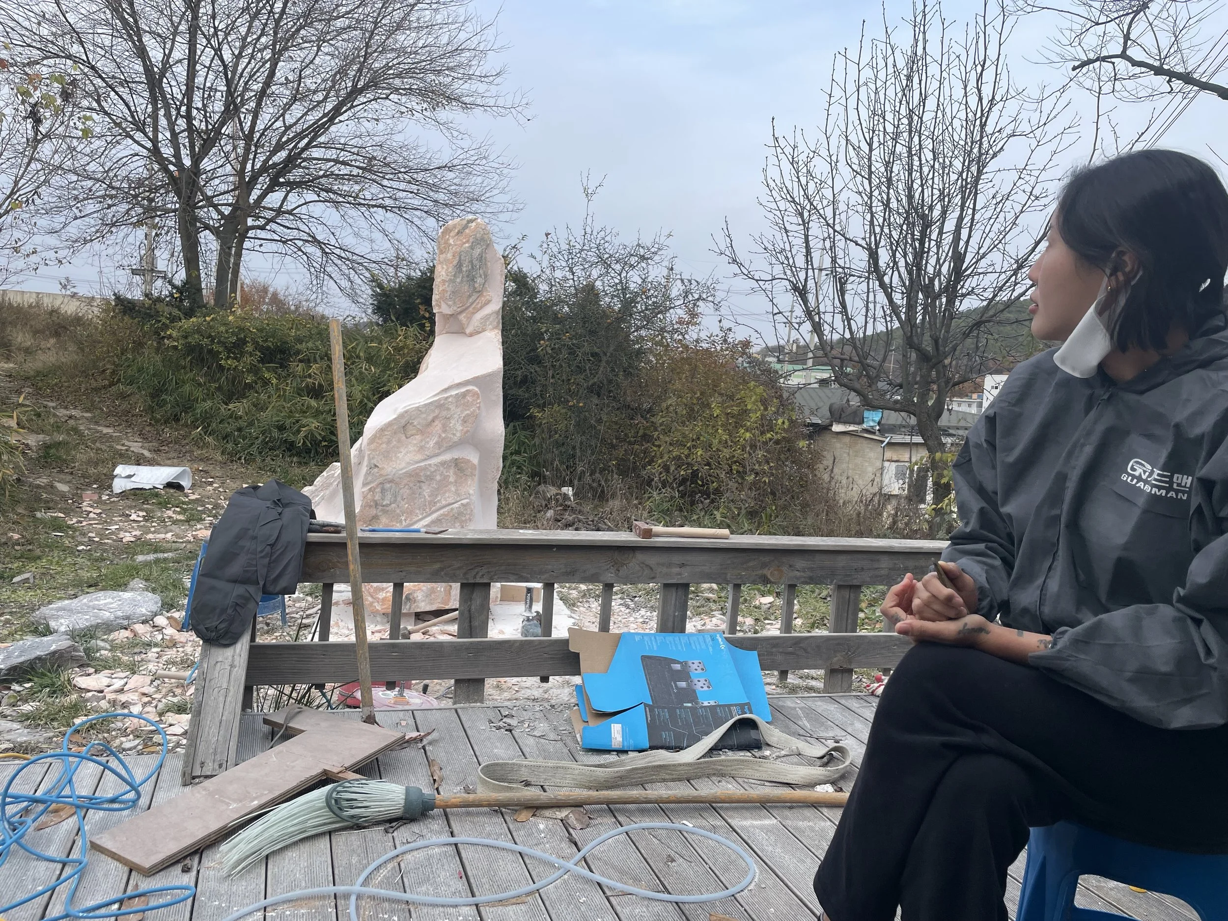 기하: 맞아. 그리고 그런 작업의 물성과 환경에 따른 마음 상태가 내가 작업할 때 듣는 음악에서도 투영이 되는 것 같은 게, 돌을 깎을 때는 무조건 엄청 시끄럽고 샤우팅하는 펑크 음악을 많이 들었단 말이야. 공구 소리가 시끄럽기도 하고 육체적 에너지가 필요하니까.